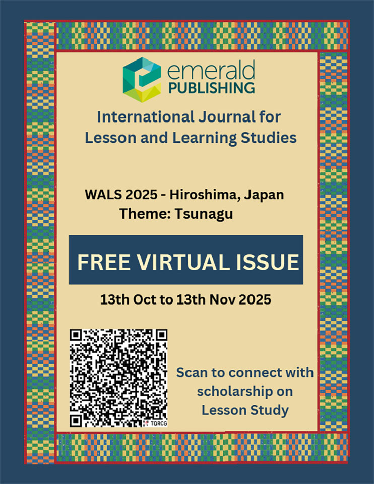 A special highlight of WALS 2025 is the Kokai Jugyou Kenkyuu (公開授業研究, Public Lesson Study Day) on the last day of the conference, where international educators and researchers will collaboratively create knowledge based on in-person Lesson Study experiences. Additionally, the conference will feature a Japan Day, offering experiences of Tsunagu between Japanese-speaking and English-speaking participants. We hope these unique opportunities encourage active participation!